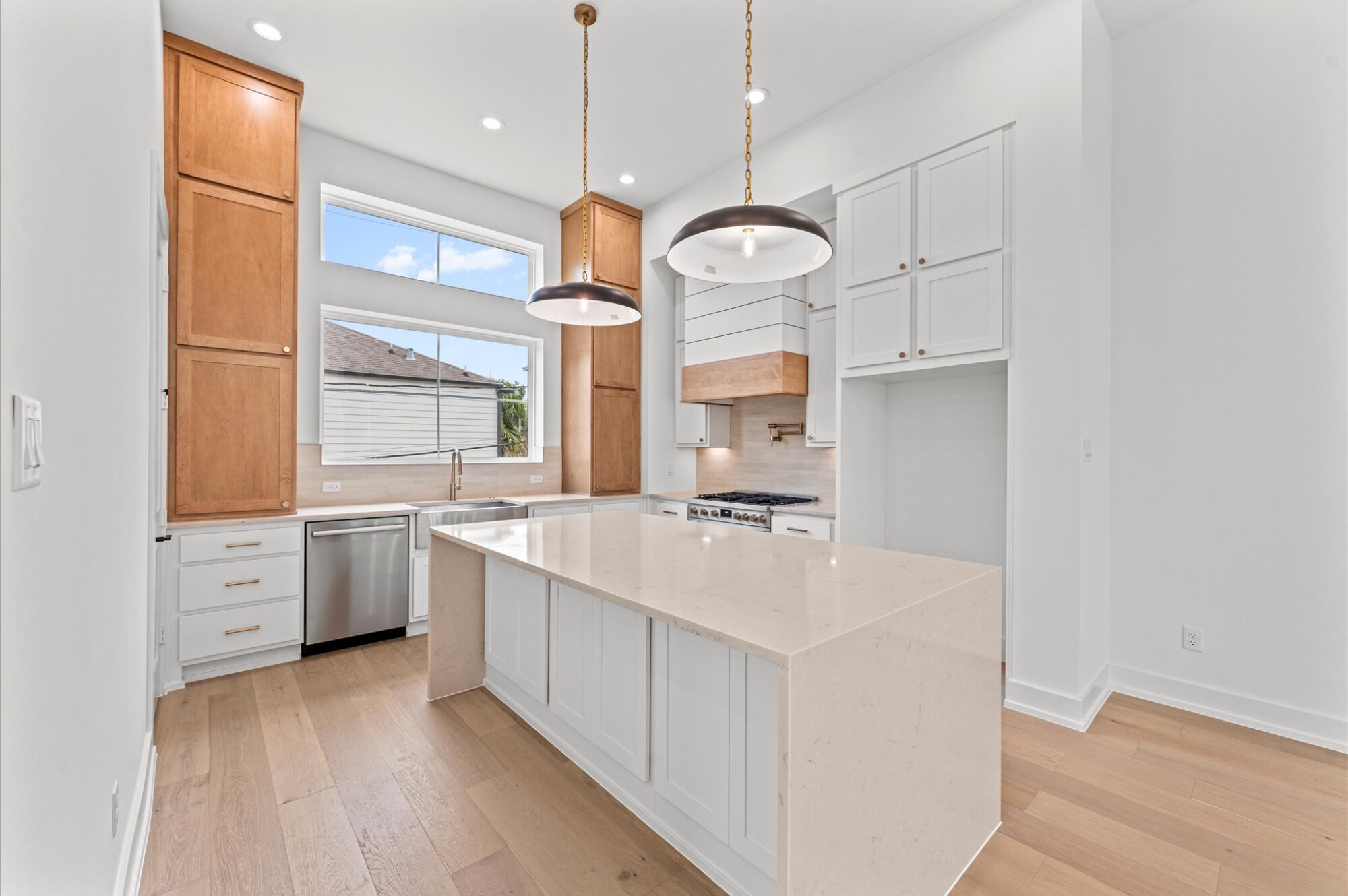 Welcome to Woodlands Landing built by TOMO Homes. This elegant 11-unit residential community offers 3 story, 2,500 sq ft of refined living space. There are 3 bedrooms and 3 ½ bathrooms, including a secondary ensuite bedroom tucked away on the first floor perfect for family or guests. On the top floor the primary bedroom and third bedroom await, with the primary boasting his and her walk-in closets, a separate shower and a luxurious soaking tub. These homes are elevator ready. There's a dedicated study for quiet moments, a covered patio off the second floor living area and 12 ft ceilings that make every room feel grand. The heart of the home features a modern and spacious kitchen with elegant quartz countertops, Bosch appliances and custom cabinetry, blending style and function beautifully. Located in the Woodland Heights, minutes from Travis Elementary and within walking distance of hike/bike trails, parks, restaurants and retail. Book your showing today! May completion!