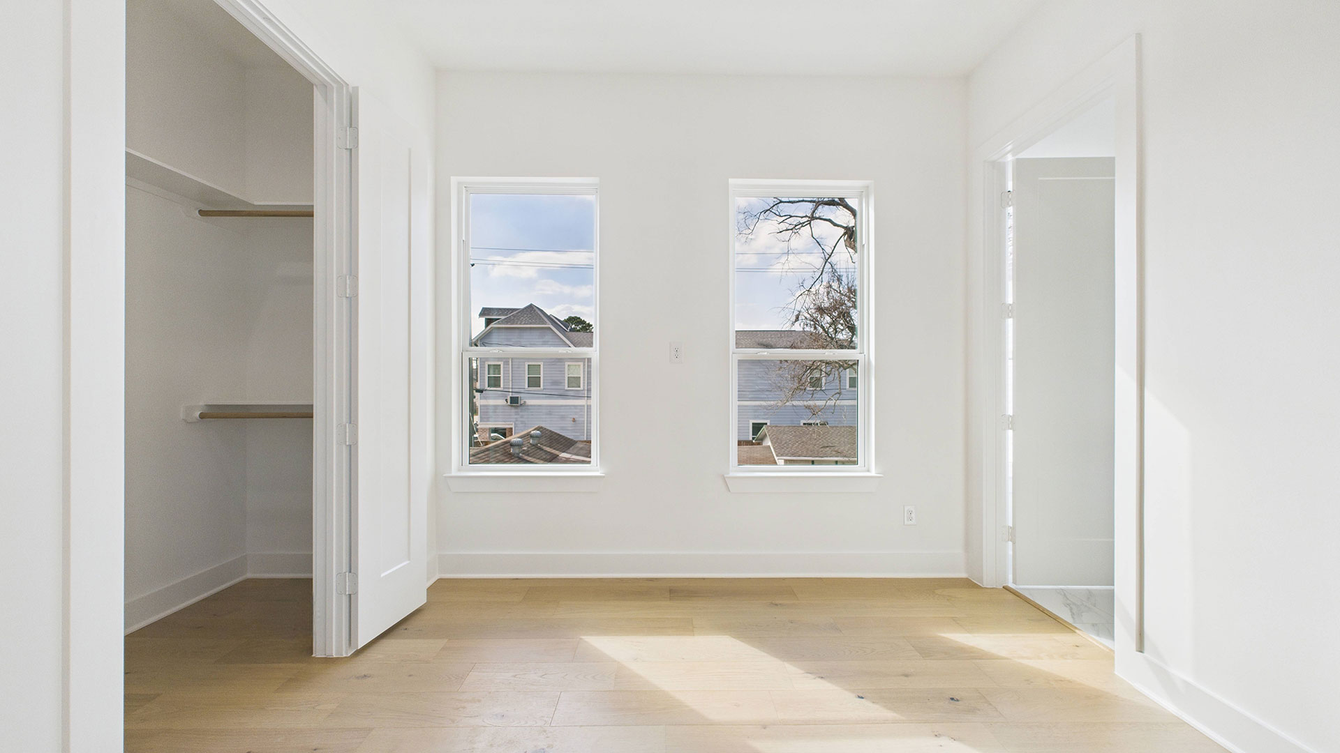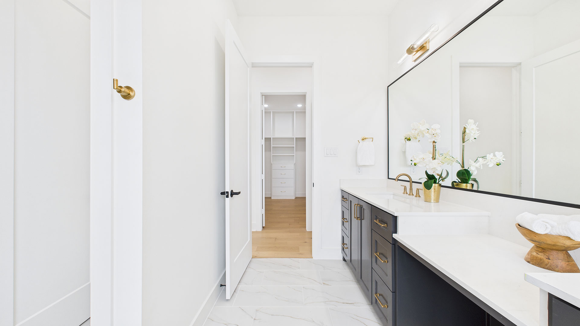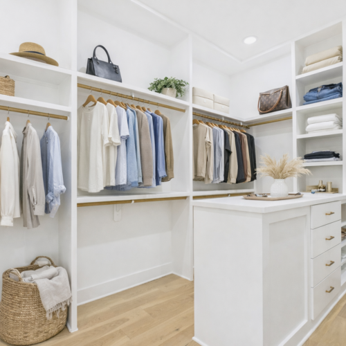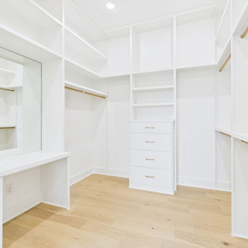 Spacious walk-in closet with custom built-ins