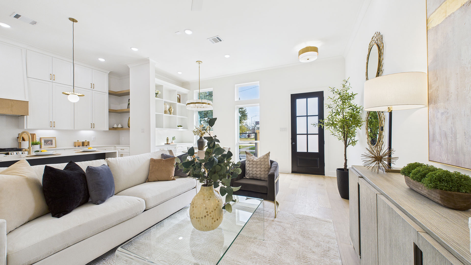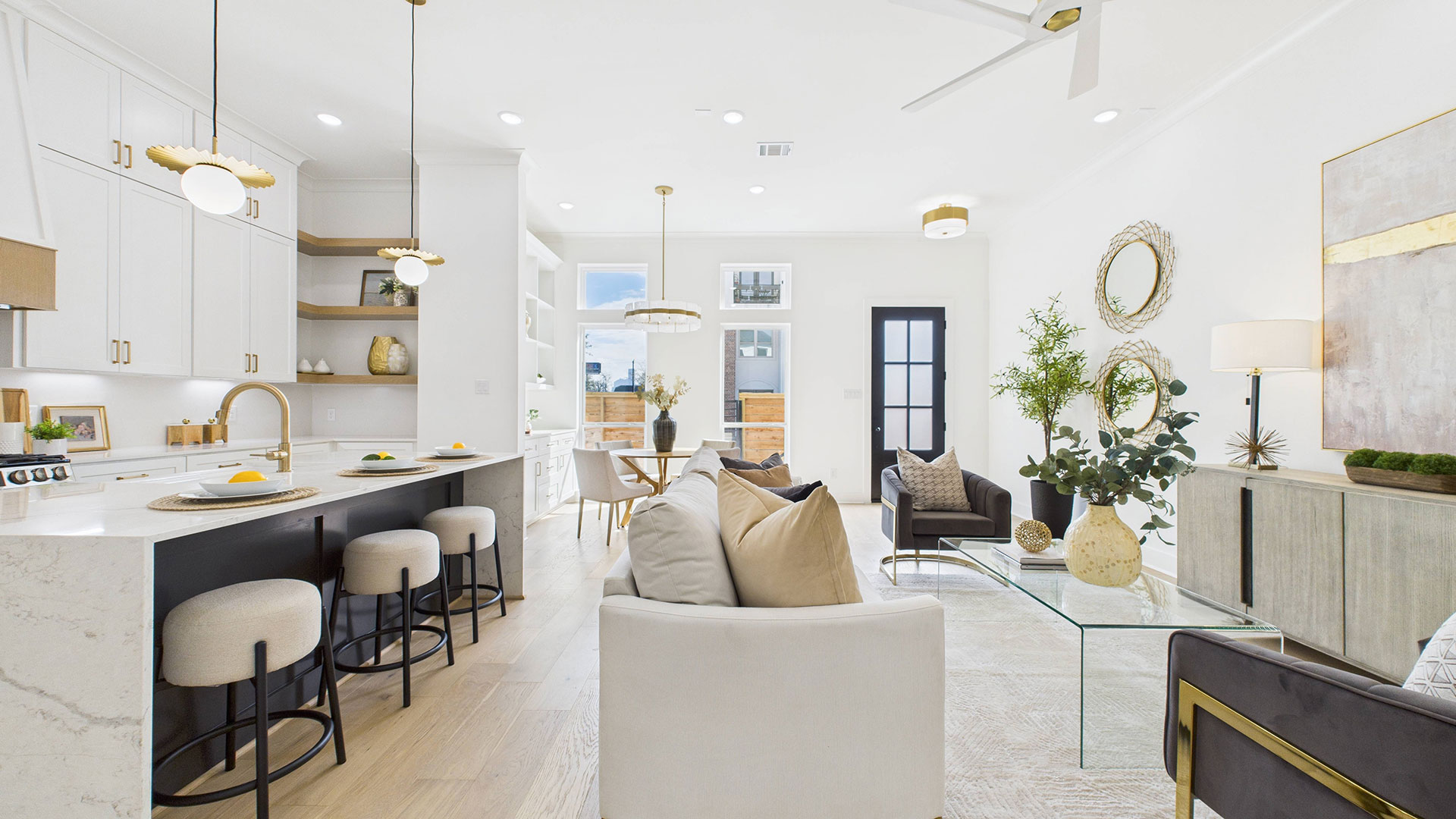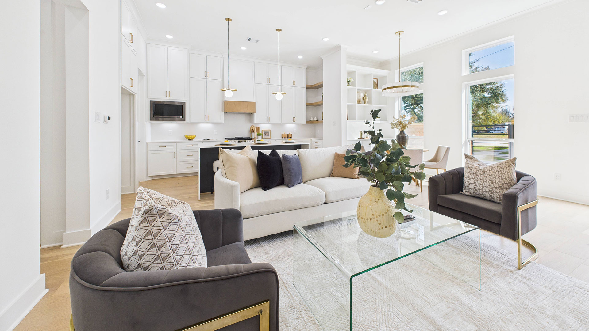 Open-concept first-floor living area filled with abundant natural light