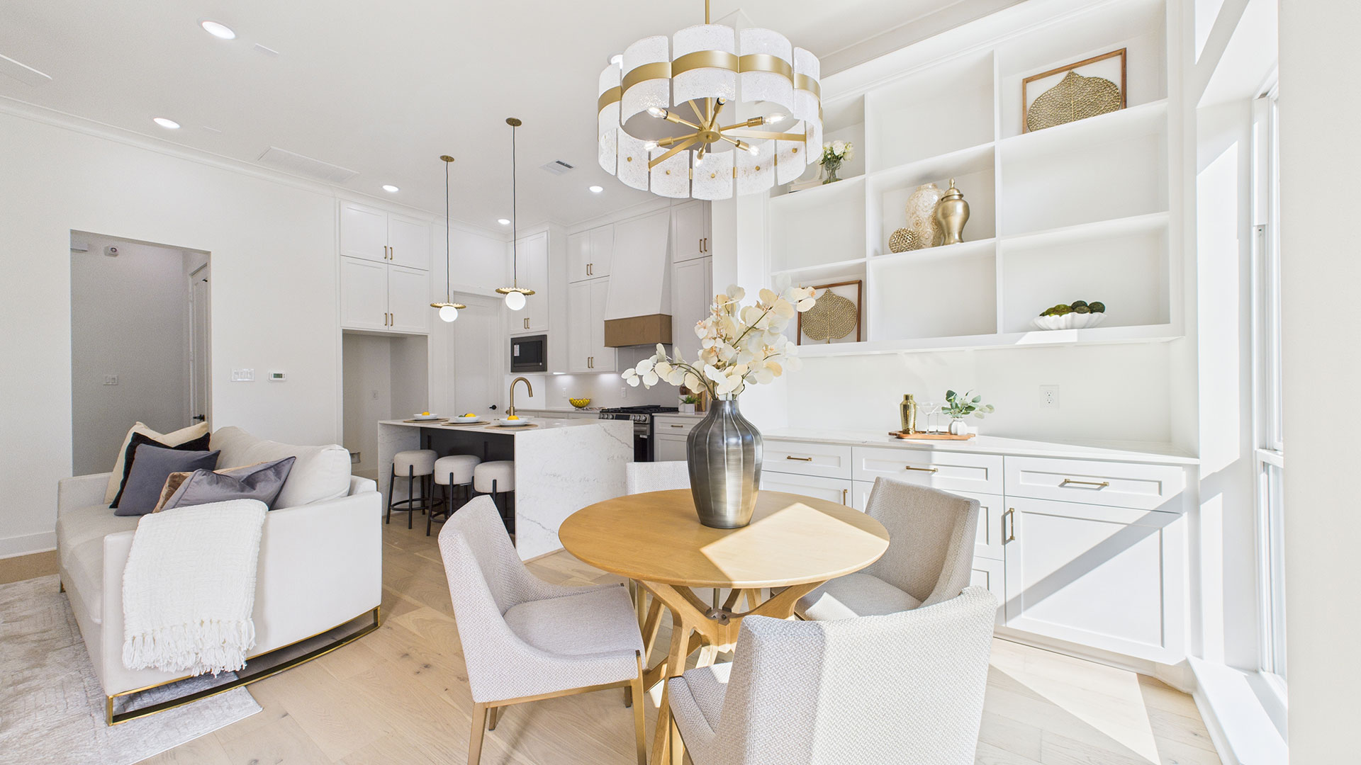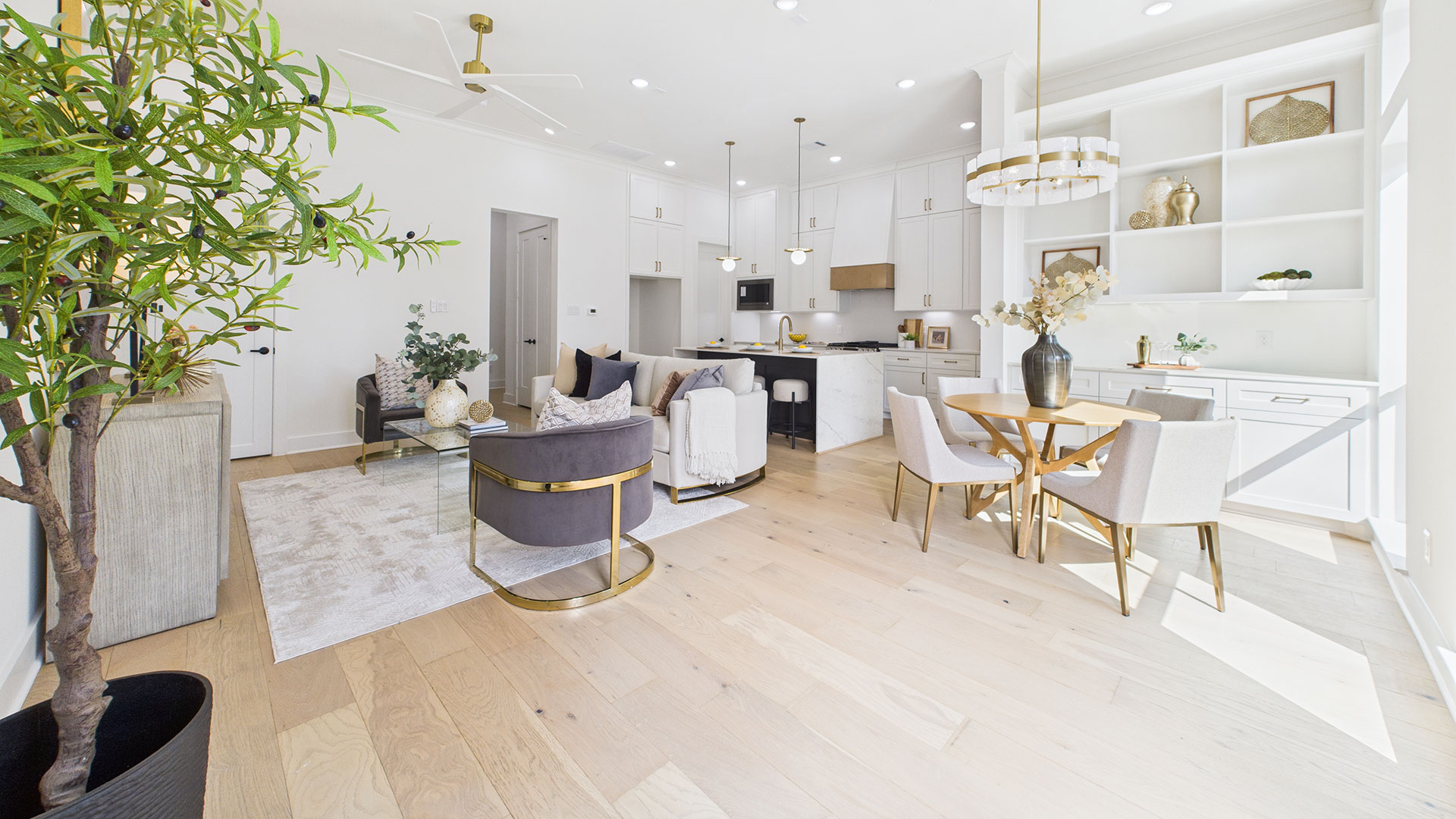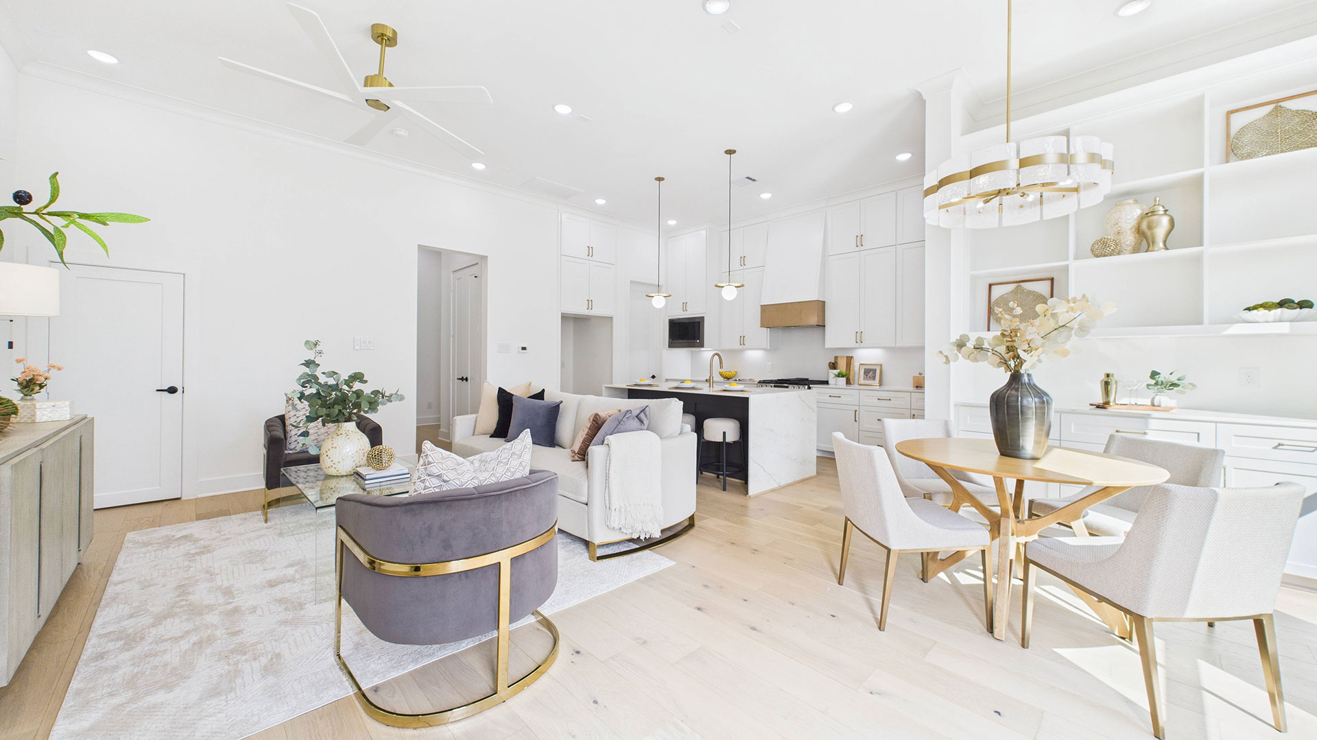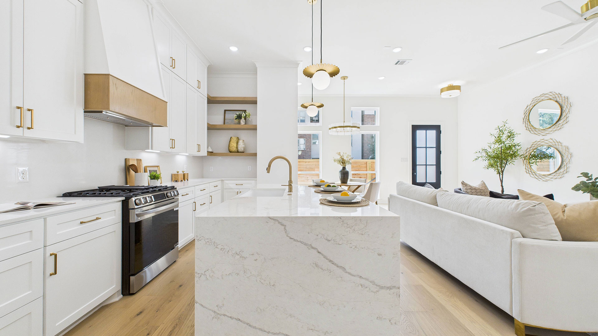 Open-concept first-floor living area filled with abundant natural light