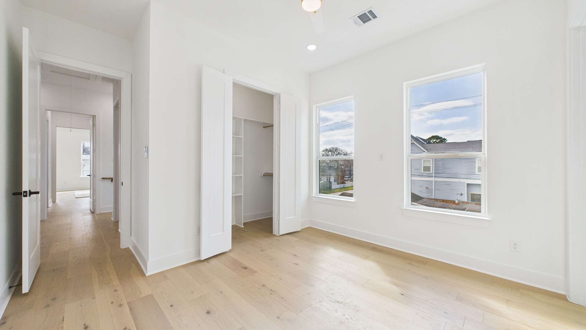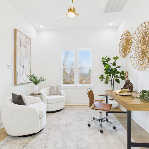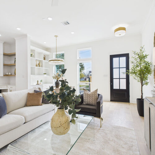 Brooke Smith at it’s finest. Just east of The Heights & bordering Norhill & Woodland Heights, this home offers the perfect blend of neighborhood charm & city convenience. With downtown visible from the primary bedroom, the commute is quick & effortless. The second floor primary suite is an elegant retreat featuring coffered ceilings, a walk-in closet with custom built-ins, & a spa-inspired bath with a six-foot soaking tub & double rain showerheads with handheld designer lighting elevating every space. The chef’s kitchen is thoughtfully outfitted with soft-close cabinetry, deep drawers for pots and pans, under-cabinet lighting, a generous quartz island, & smart storage including a trash drawer—ideal for both everyday living & entertaining. Abundant windows flood the home with natural light, highlighting the open-concept first-floor living area. 2 additional ensuite bedrooms on 2nd floor offer privacy & style, each w/ designer lighting & floor-to-ceiling tile baths.