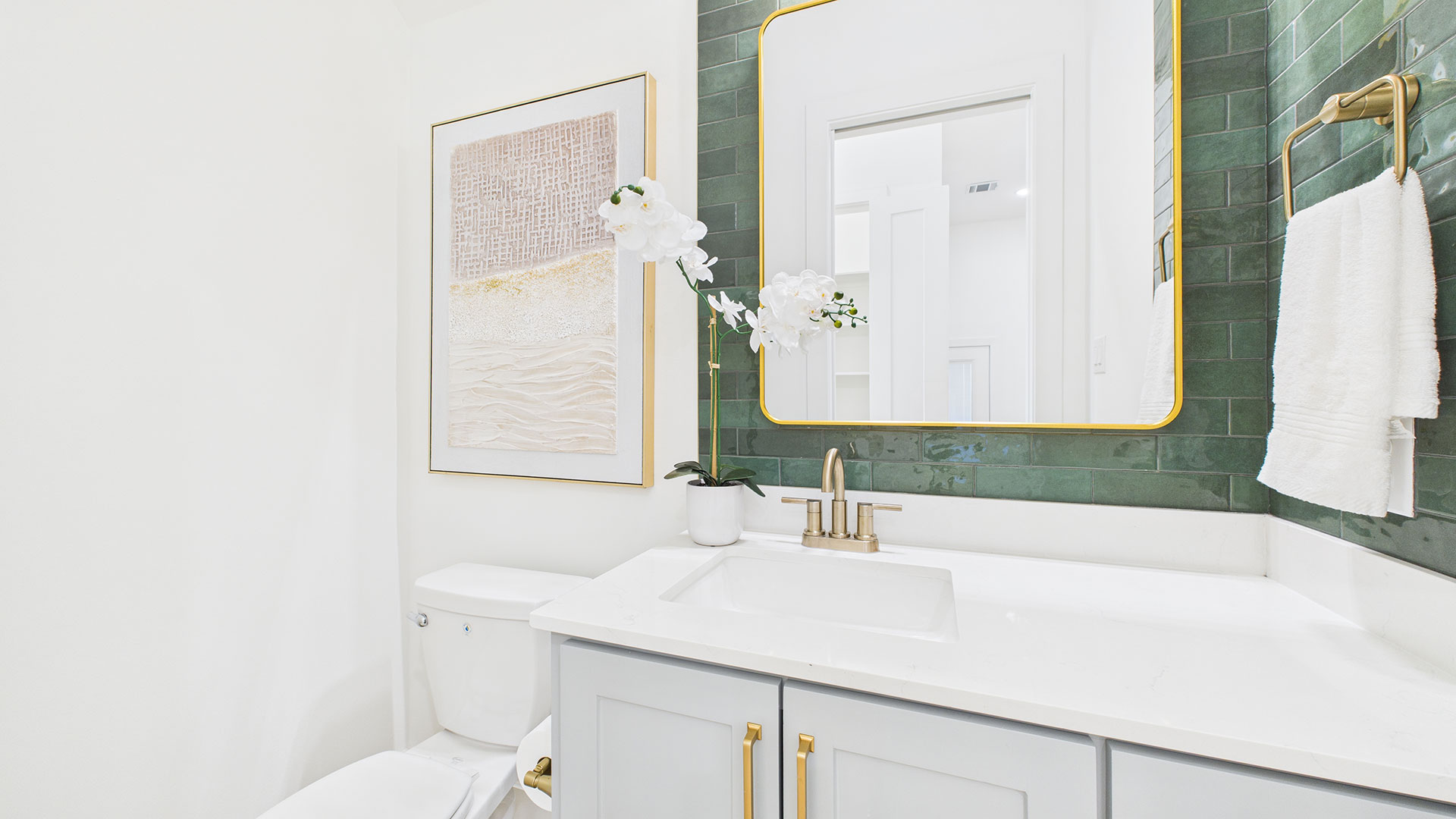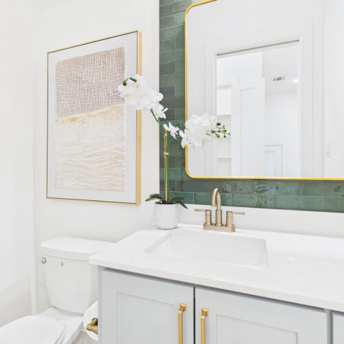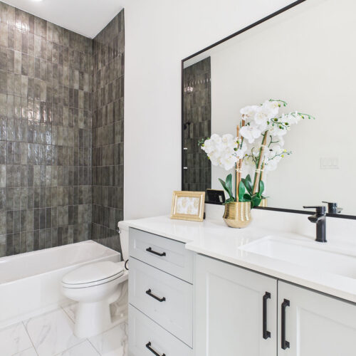 Floor-to-ceiling tile in secondary baths with designer finishes