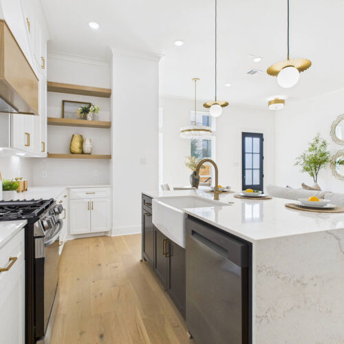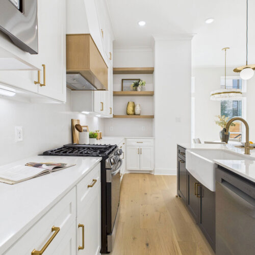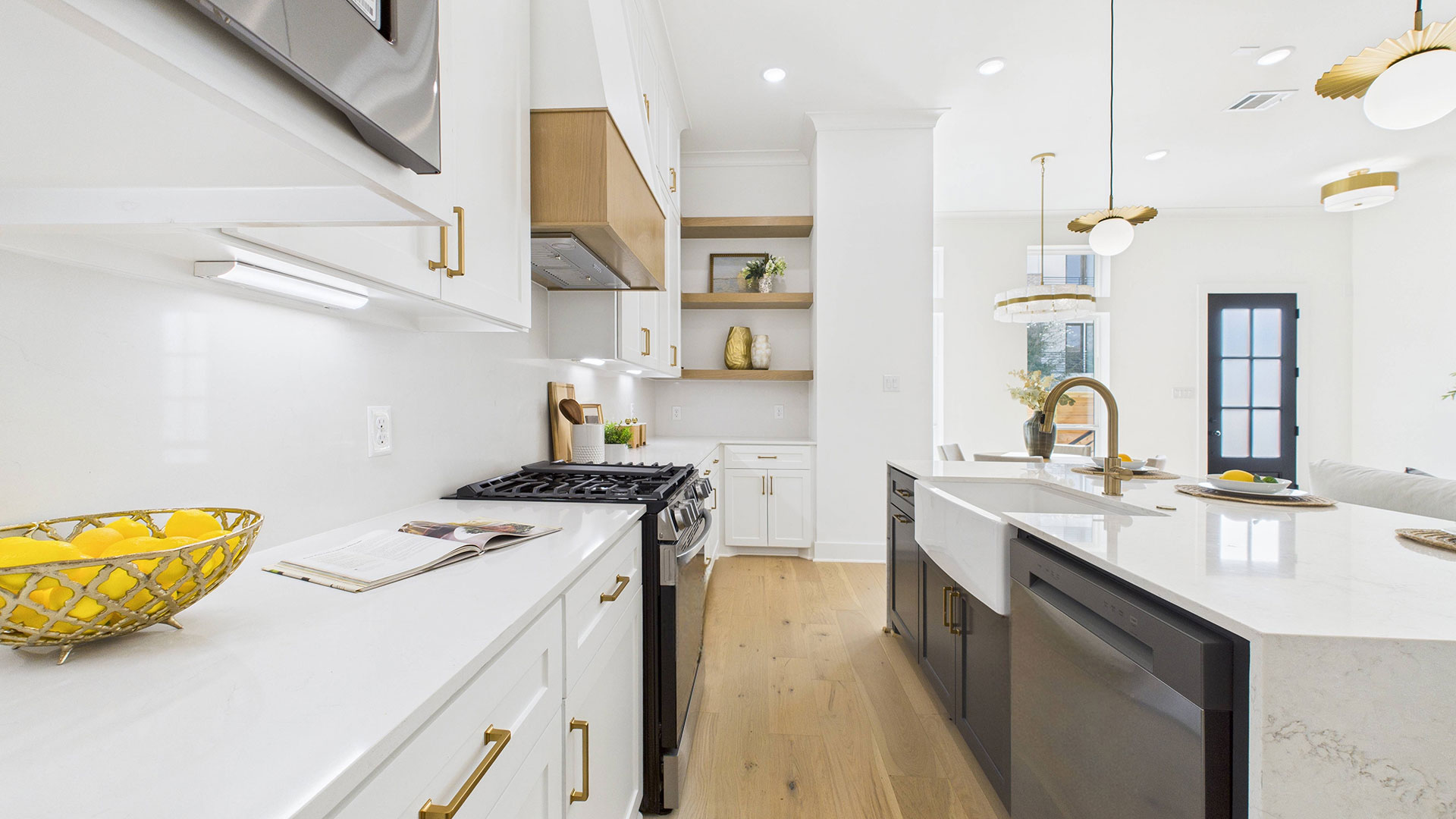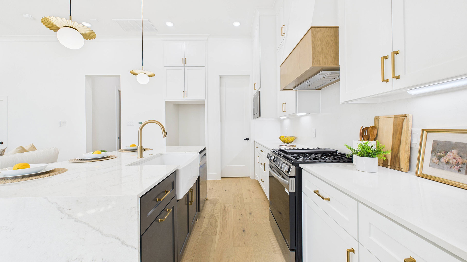 Chef’s kitchen with soft-close cabinetry, deep pot-and-pan drawers, and under-cabinet lighting